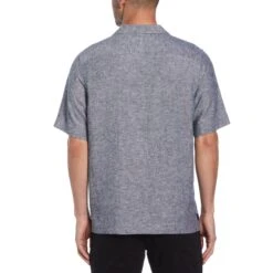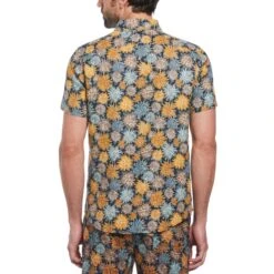 Original Penguin Delave Linen Geometric Palm Print Short Sleeve Button-Down Shirt In Tourmaline
