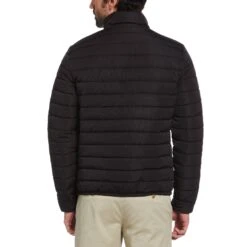 Original Penguin Lightweight 1/4 Zip Long Sleeve Golf Windbreaker With Striped Collar In Caviar