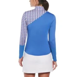 Original Penguin Women’s Geo Block Sun Protection Long Sleeve Tennis Shirt In Nebulas Blue