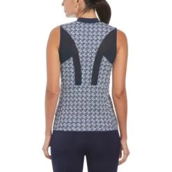 Original Penguin Women’s Geometric Print Sleeveless Golf Polo With Mesh Back In Black Iris