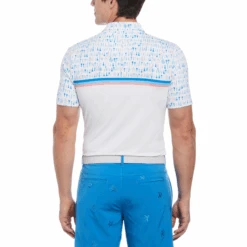 Pete’s here, there and everywhere for you when you hit the golf course in this Original Penguin performance golf polo. This men’s golf shirt looks extra sharp with a contrasting allover mini Pete print and classic self-collar with 3-button placket. Sustainable single knit fabrication made with 90% recycled polyester creates a lightweight, comfortable golf top you can feel good in. A Chi Chi Rodriguez Pete logo makes this unique golf shirt a true original.