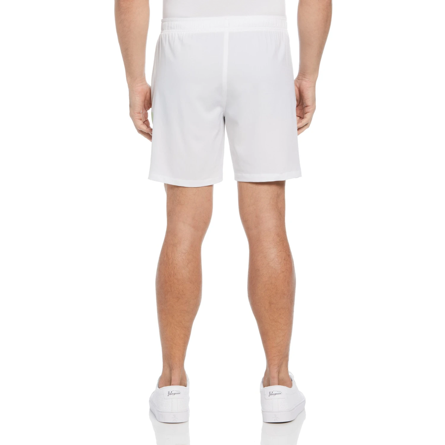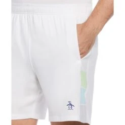 Featuring color blocking down the sides for a fresh, modern look, these Original Penguin men’s shorts will be an eye-catching addition to your tennis apparel. Made from durable plain weave fabric, the men’s tennis shorts feature added stretch for enhanced mobility and a drawstring-adjustable elastic waistband to help ensure a comfortable, customized fit. Moisture-wicking technology helps to keep you dry during intense matches, while our beloved mascot Pete the penguin pops up near the hem in a sticker-inspired logo to add an extra layer of cool to the look.