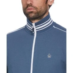 For the perfect fusion of style and comfort, choose this men’s track jacket from Original Penguin. This slim-fit tracksuit jacket is crafted with pique fabric that weaves raised cords into the surface for a subtle textured finish and a stylish look. Coolmax® technology helps keep you cool when your activities heat up. Ideal for hanging out or running around town, this track jacket will elevate your casual wardrobe while keeping you cozy.