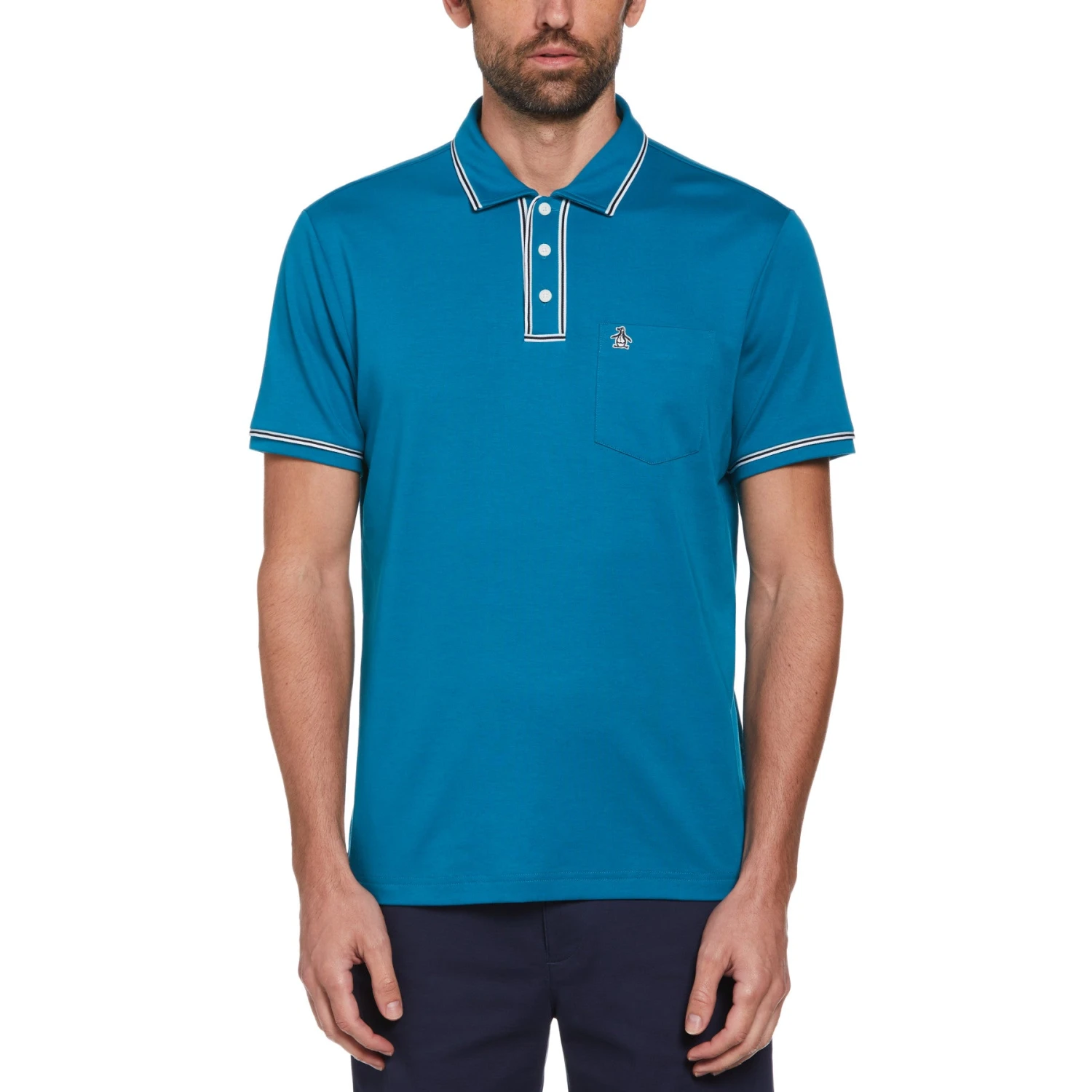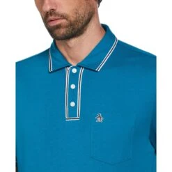 The Original Penguin Earl men’s polo shirt is all about the details. The iconic design features contrast piping along the collar, cuffs and placket for sophisticated, timeless style. Interlock knit fabrication gives the breathable organic cotton fabric a smooth feel and natural stretch for impressive comfort. A sticker Pete logo adds a fashionable finishing touch to the left chest pocket.