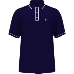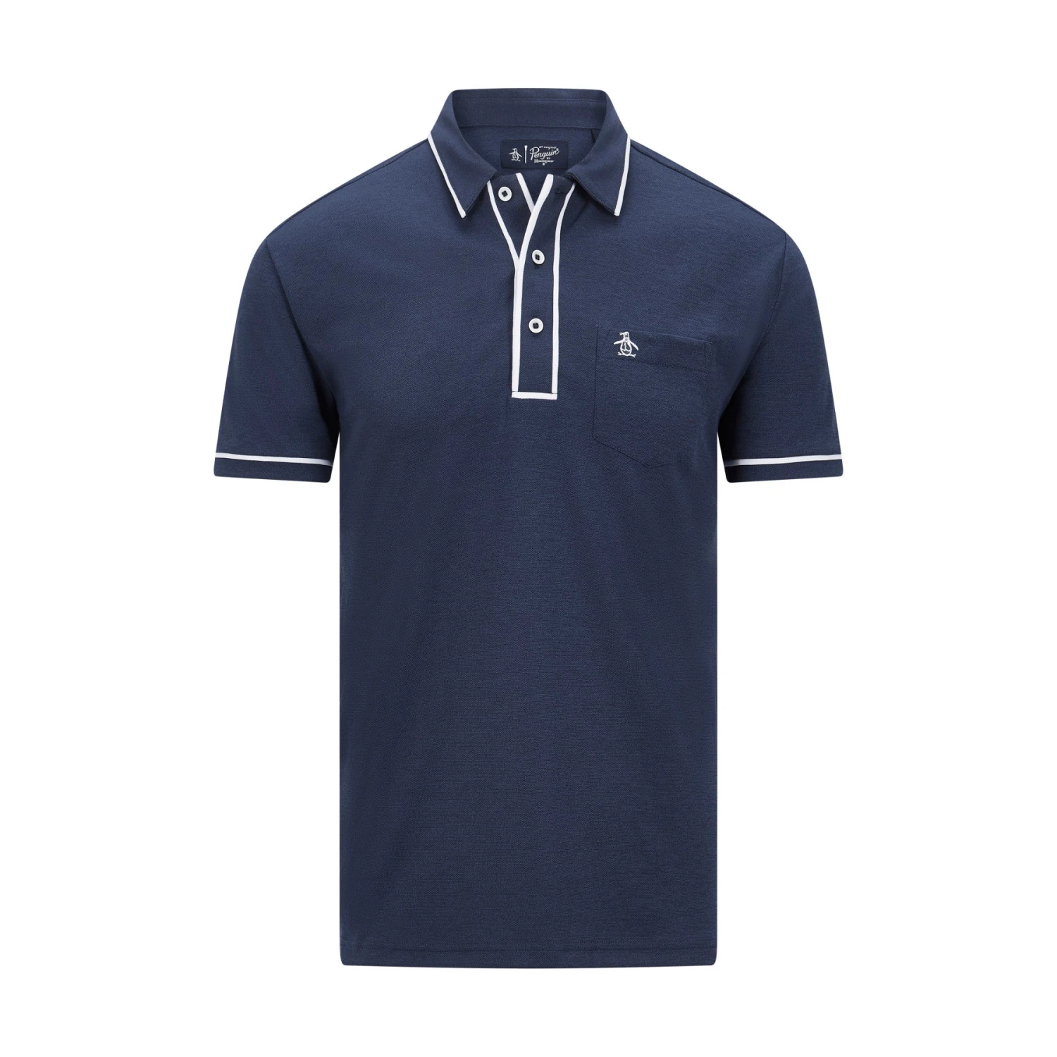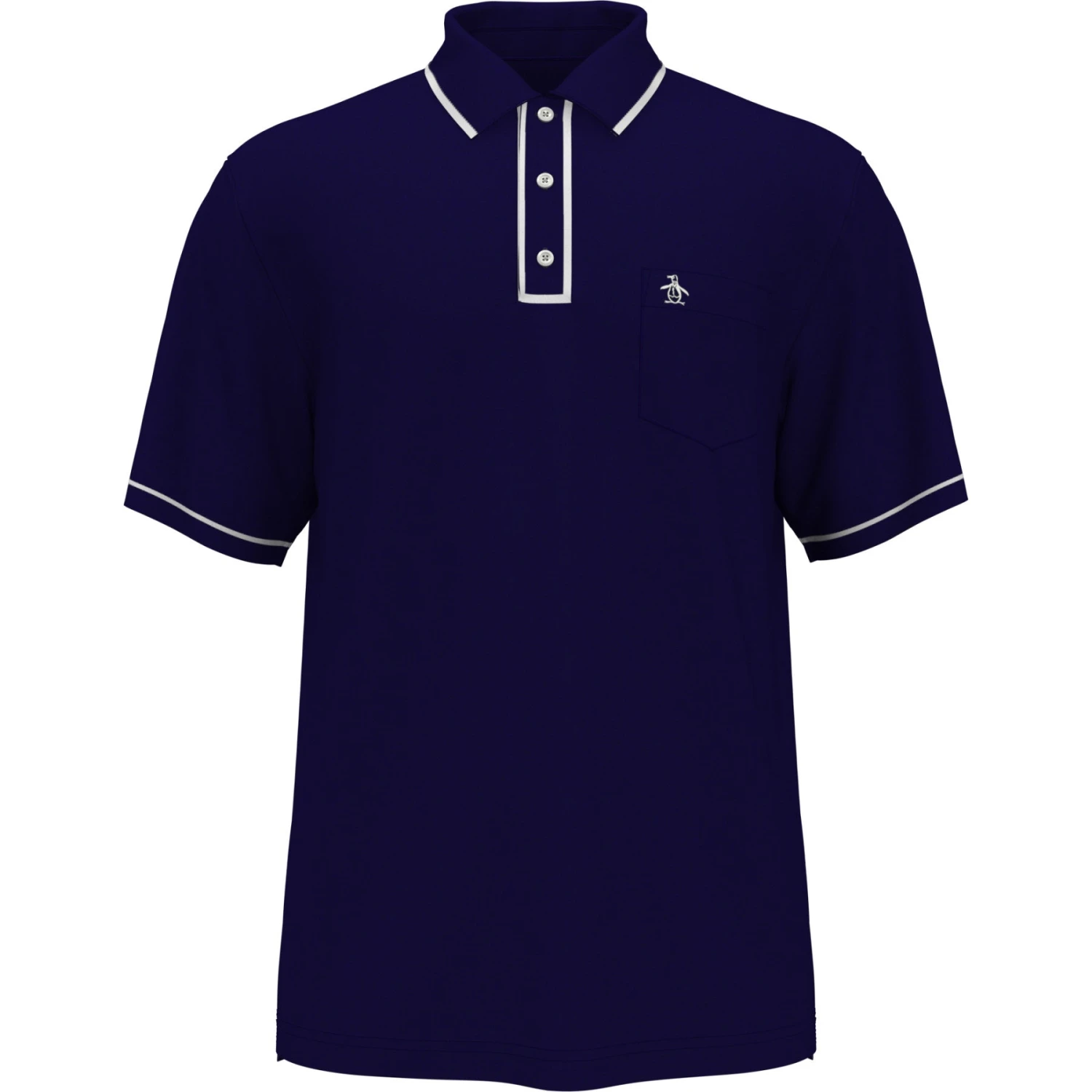 Get your A-game on and look good doing it in The Golfer Earlâ„¢ Polo from Original Penguin. This sleek polo is crafted from a double-knit high-gauge dobby fabric for texture and durability. Contrast tipping at the collar and contrast piping on the cuffs and placket add sophisticated styling. Two-tone Pete embroidery pops on the handy left chest pocket of this short sleeve polo shirt.