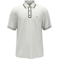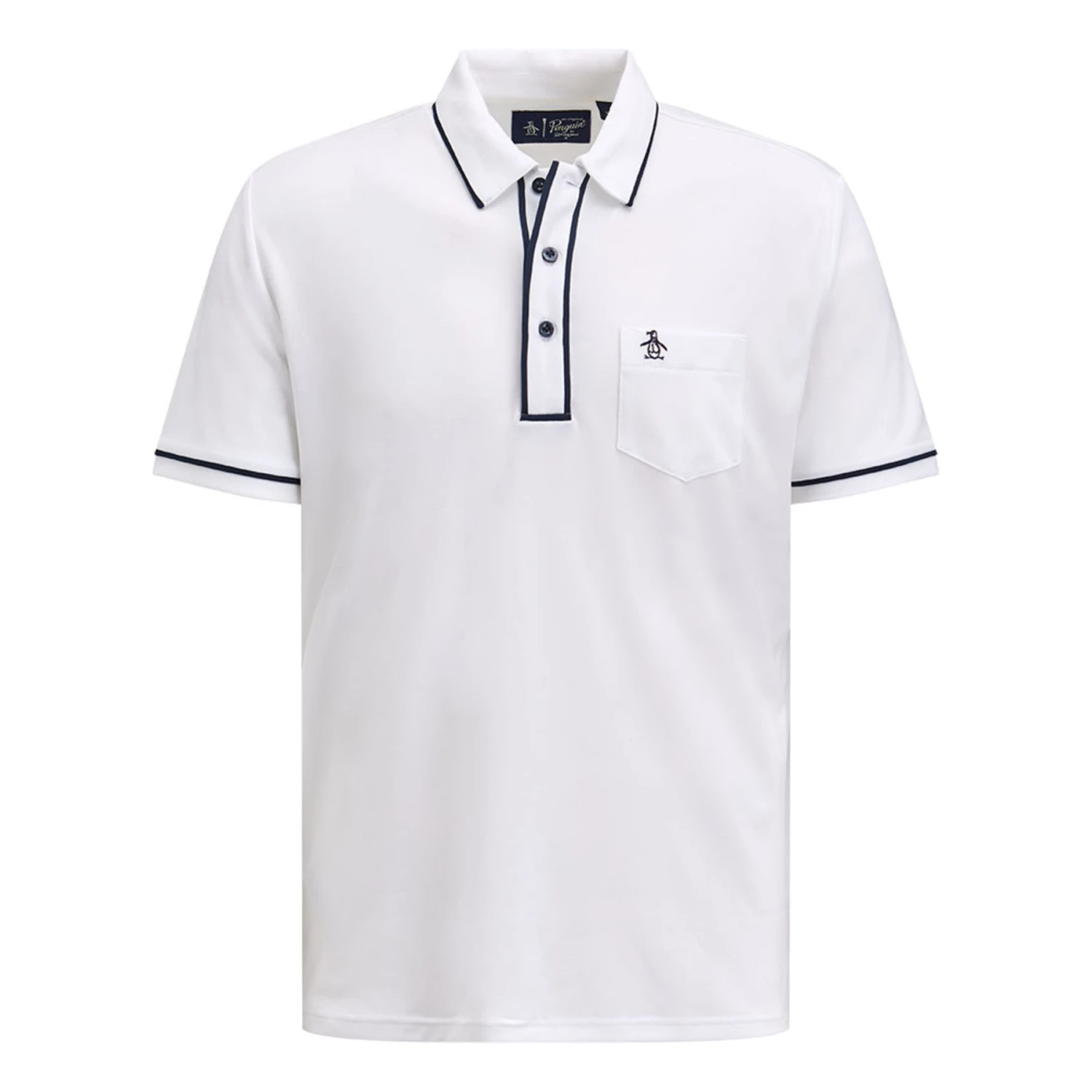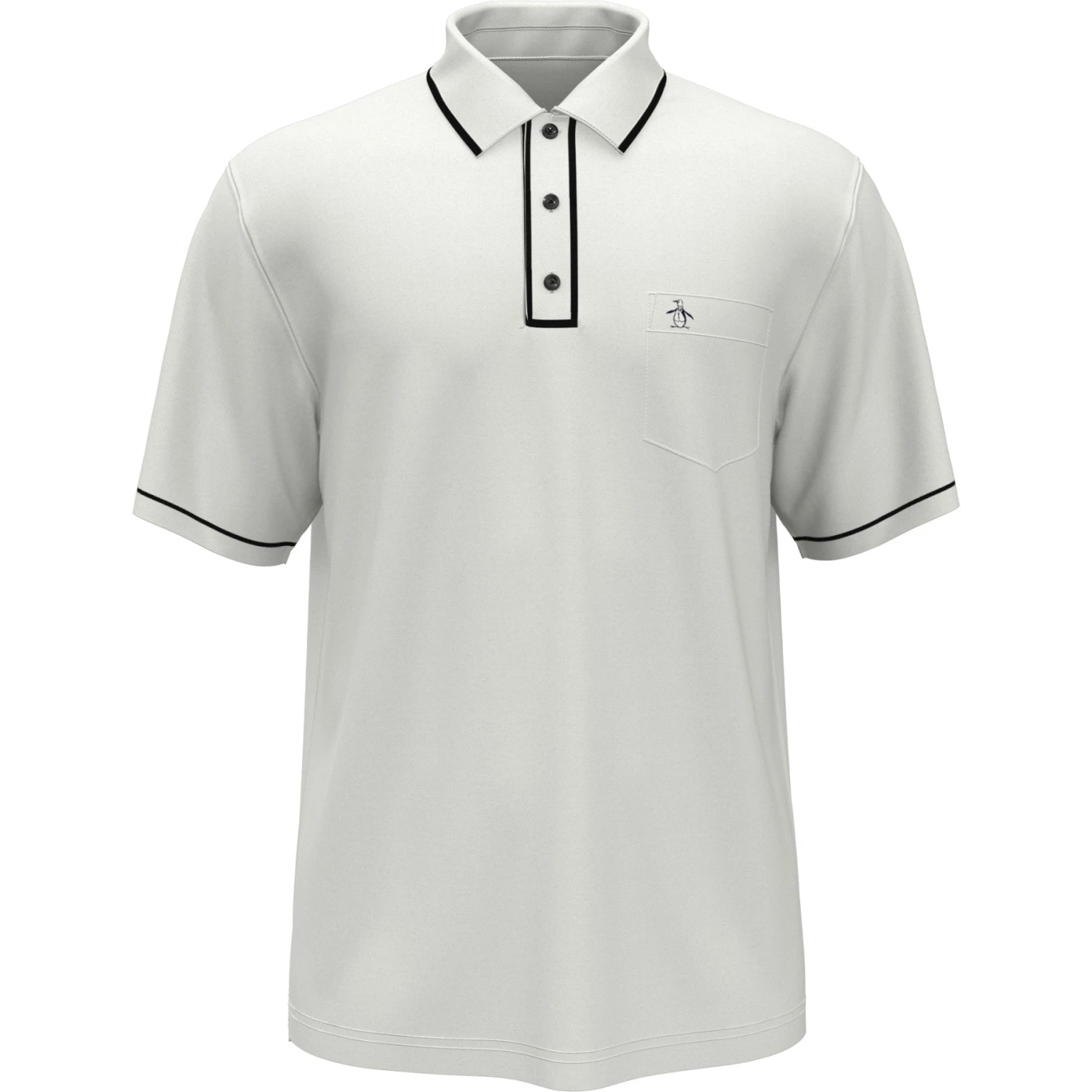 Get your A-game on and look good doing it in The Golfer Earl™ Polo from Original Penguin. This sleek polo is crafted from a double-knit high-gauge dobby fabric for texture and durability. Contrast tipping at the collar and contrast piping on the cuffs and placket add sophisticated styling. Two-tone Pete embroidery pops on the handy left chest pocket of this short sleeve polo shirt.