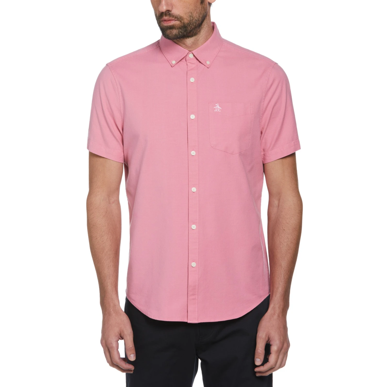 Original Penguin Ecovero Short Sleeve Oxford Shirt In Wild Rose