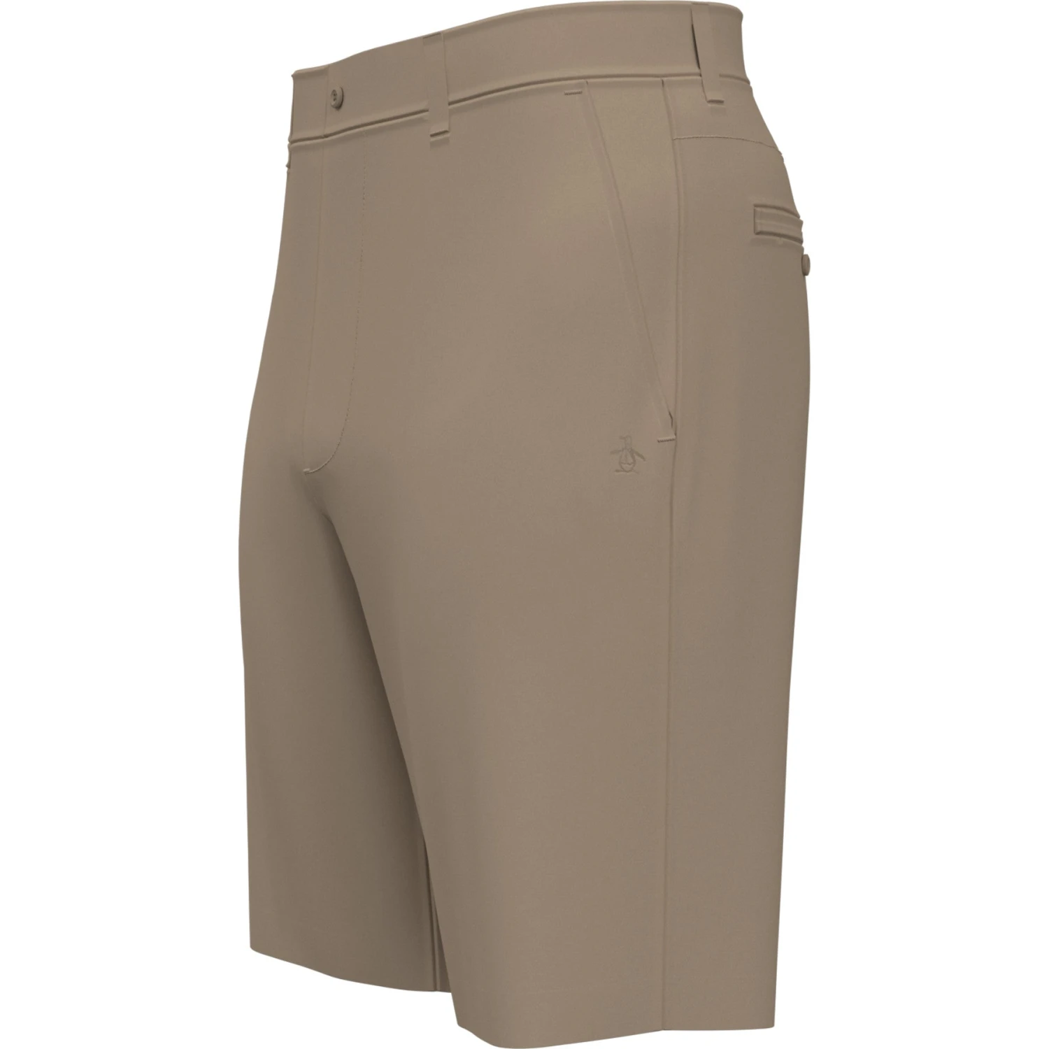 These Original Penguin flat-front men’s golf shorts have you covered on golf days or casual days with a lightweight twill stretch fabric for a flexible fit that moves with you. Moisture-wicking technology pulls sweat away from your body to keep you feeling cool. Side and back pockets provide handy storage space for on-the-go essentials. The flat front ensures a sleek, modern silhouette and the solid color fits in seamlessly with your existing golf apparel.