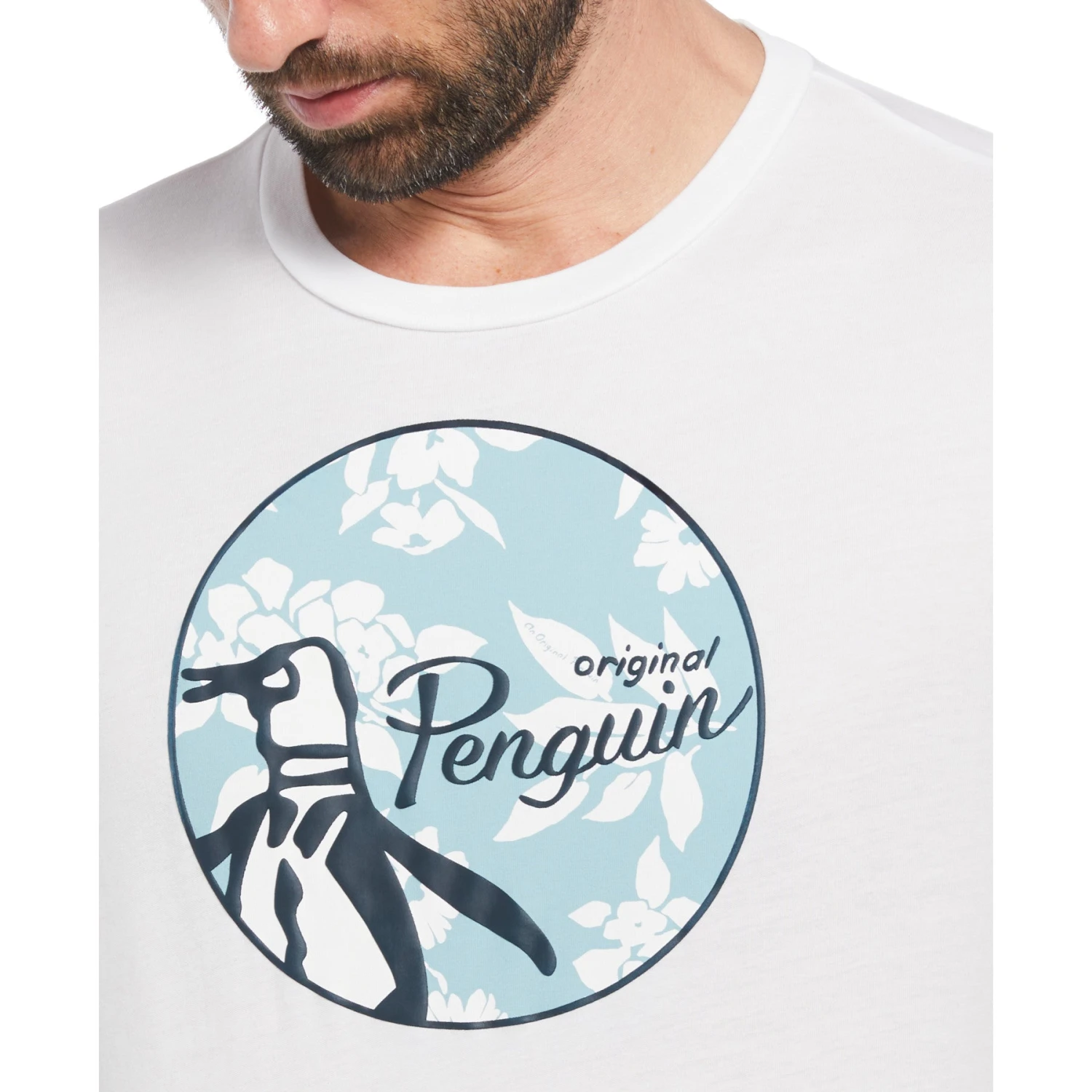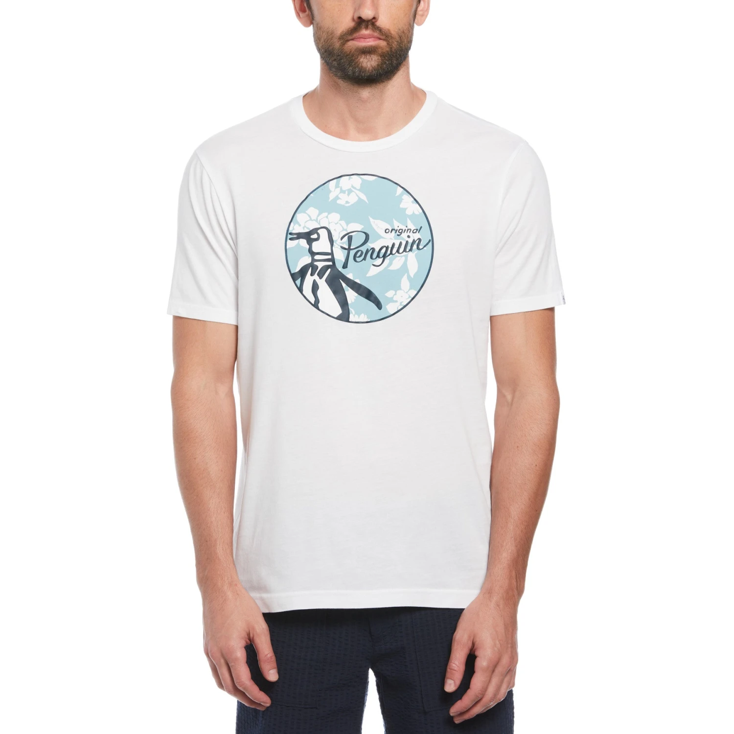 This Original Penguin men’s t-shirt offers a cool, slim-fitting design perfect for everyday casual wear. Made with soft jersey fabric to help ensure comfort in any weather conditions, the cotton t-shirt is a smart addition to any guy’s wardrobe. The tee’s standout feature is a floral circular logo print on the chest that features a raised puff effect for a unique twist. Durable, stylish and easy to wear, this versatile men’s tee will quickly become one of your go-to tops.