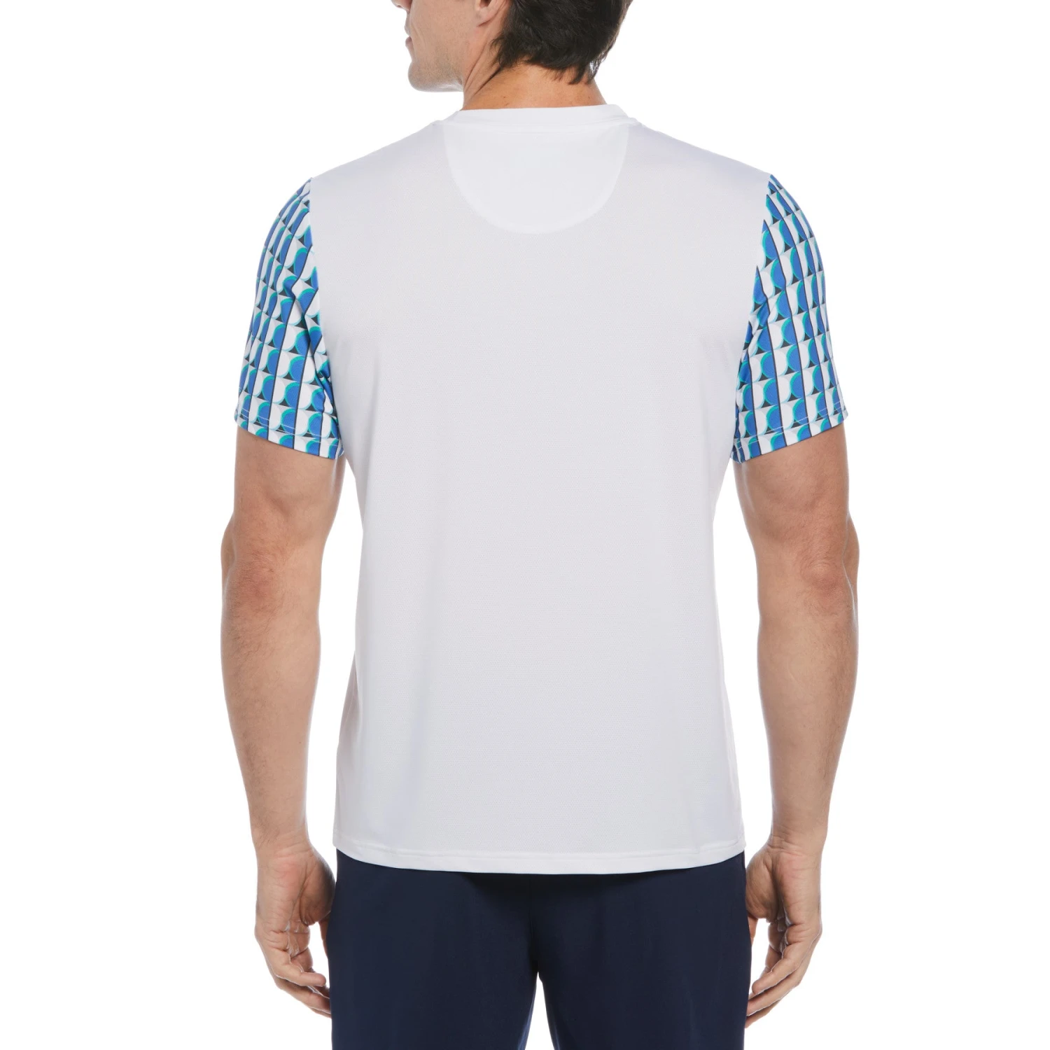Experience an ideal blend of comfort and style with this eye-catching geo pattern-blocked men’s tennis shirt from Original Penguin. Crafted from a lightweight single knit fabric, the men’s t-shirt is enhanced with stretch for optimal mobility during your matches. Moisture wicking properties help to keep you comfortable and dry as you serve, run and rally.