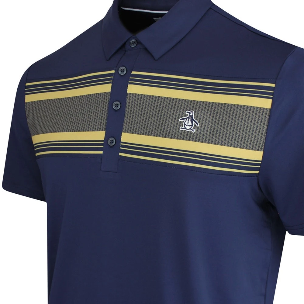 Original Penguin golf shirts are up there with the best in the game and we love this new style which has arrived from the AW23 collection. It’s a technical, performance-driven style which features a multi coloured, colour block chest stripe for some retro style appeal this season. The soft and flexible fabric offers supreme comfort with freedom of movement and moisture wicking performance, while the signature OPG fit and hem vents allow this style to be worn untucked with ease. The “Sticker Pete” logo is located at the left chest and helps to round off another outstanding polo shirt from Original Penguin.