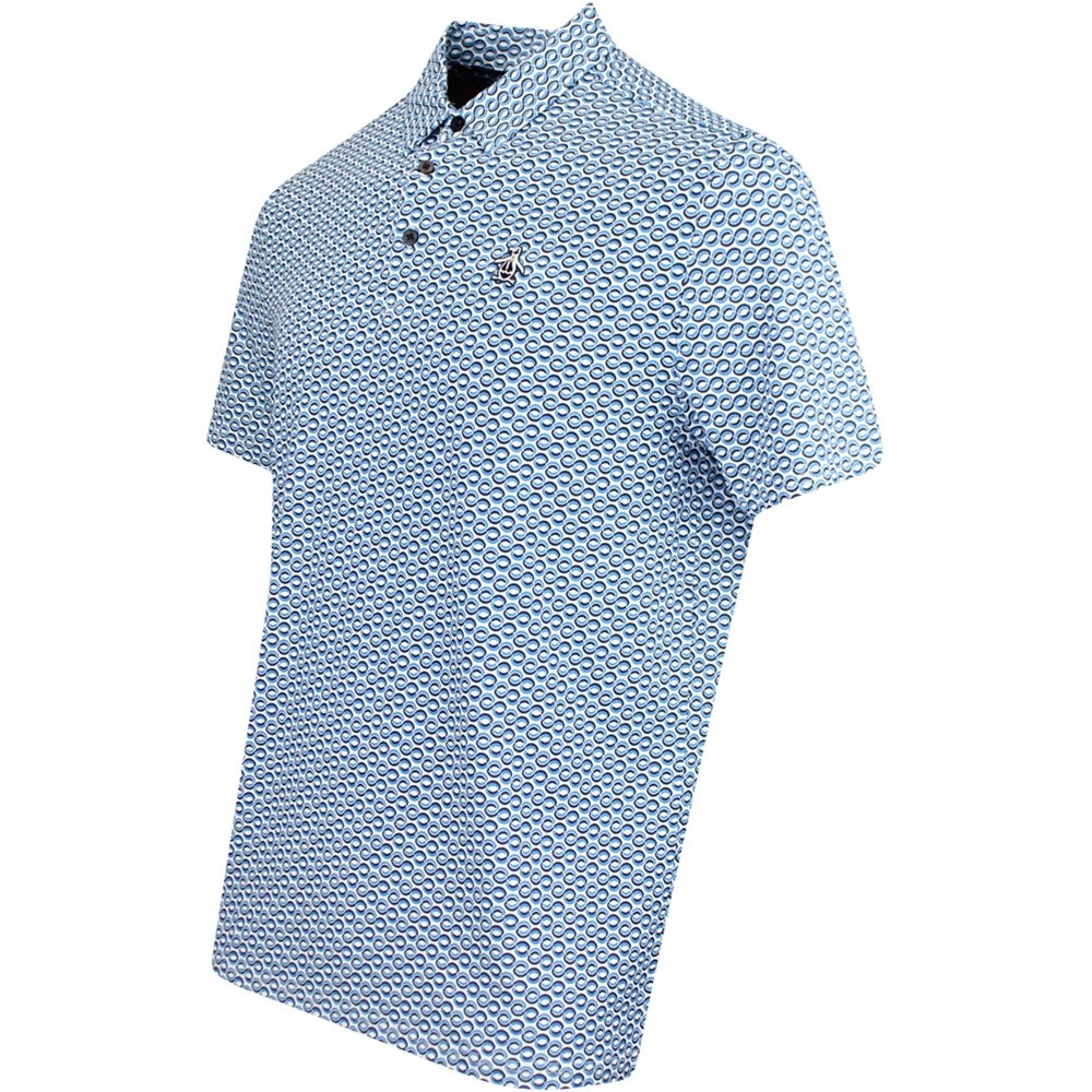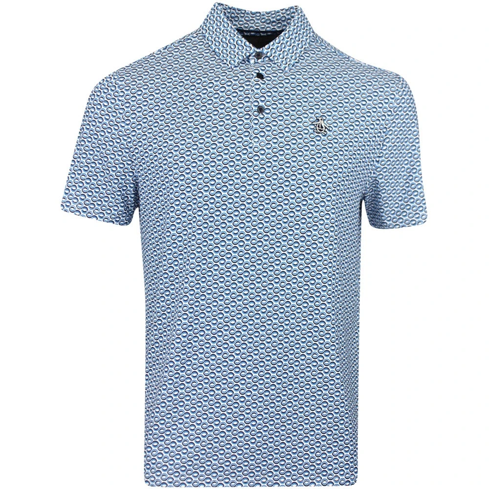 Original Penguin Golf Shirt – Micro Geo Print Polo – Med. Blue AW23