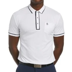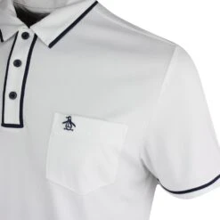 Original Penguin is the newest brand to arrive online at Golfposer and this iconic style is one of our favourite polo shirts from the new collection. It’s a technical, performance-driven style which is based on the classic “Earl” fashion silhouette – complete with contrast tipping and a left chest pocket for that signature OPG look. The soft and flexible fabric offers supreme comfort with freedom of movement and moisture wicking performance, while the slim fit silhouette and hem vents allow this style to be worn untucked with ease. The Pete logo is embroidered on top of the pocket, rounding off one of the best wardrobe staples for wearing both on and off the golf course this season.