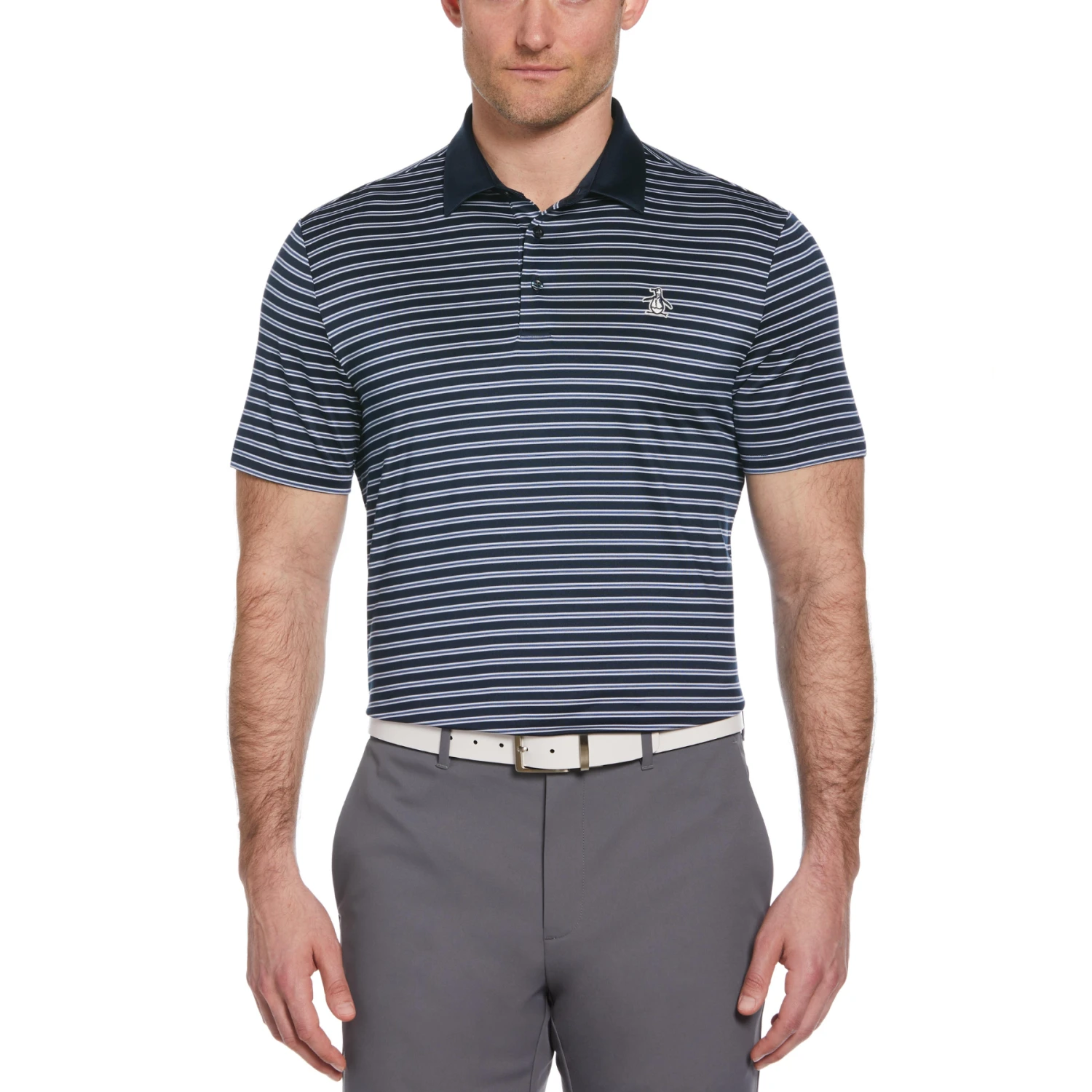 Classic stripes, heritage styling and high-performance materials meet in this classic Original Penguin men’s polo. Made with jersey fabrication, it’s incredibly soft against the skin, while added stretch offers a superior fit. This polo moves with you, so it’s great for hanging out around town, playing with the kids or hitting the golf course. Plus, the classic styling and contrasting solid collar smartens you up nicely for casual dress occasions.