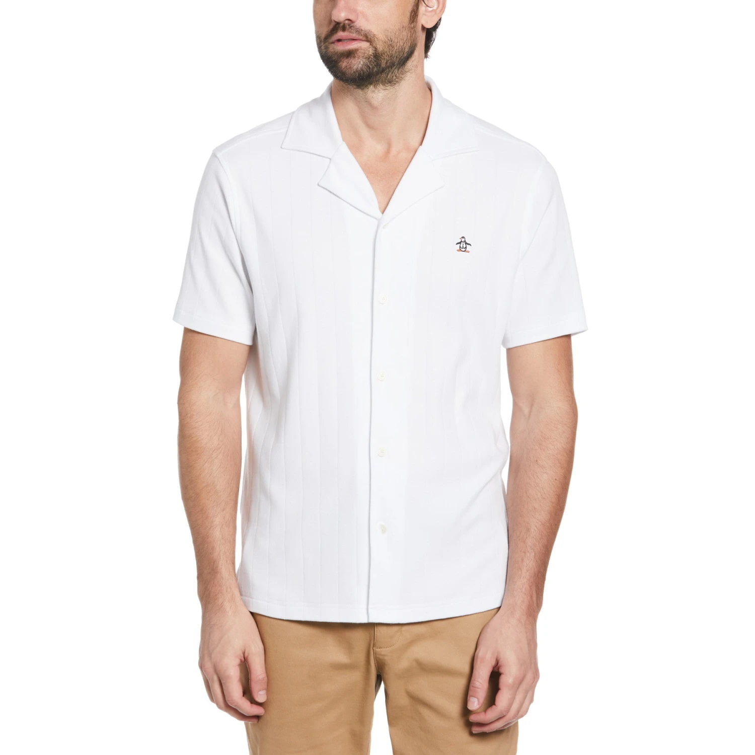 Stay cool in this effortlessly stylish Original Penguin short sleeve shirt. Made with breathable organic cotton and featuring subtle drop needle fabrication for a unique pattern, this laidback short sleeve button up has a camp collar and a casual fit. Perfect for any casual occasion where you want to look pulled together without looking like you’re trying too hard.