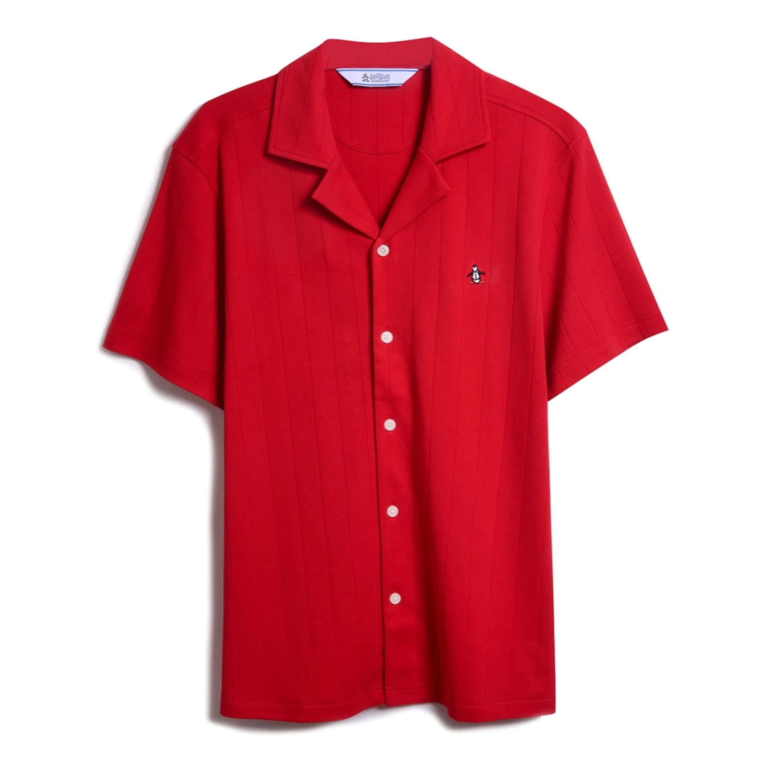 Stay cool in this effortlessly stylish Original Penguin short sleeve shirt. Made with breathable organic cotton and featuring subtle drop needle fabrication for a unique pattern, this laidback short sleeve button up has a camp collar and a casual fit. Perfect for any casual occasion where you want to look pulled together without looking like you’re trying too hard.