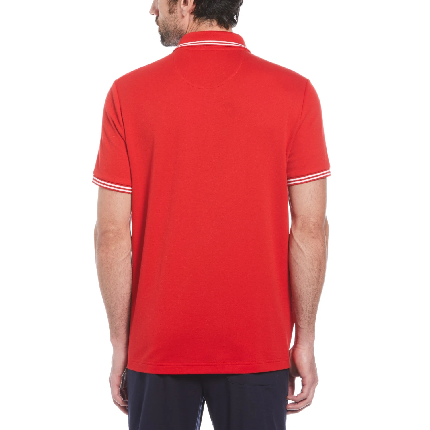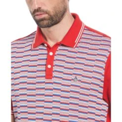 Embrace effortless style with this Original Penguin men’s polo. Crafted from 100% cotton for breathable comfort, this polo shirt for men also features a refined jacquard knit front to add a touch of sophistication to a timeless wardrobe staple. Interlock fabric provides natural stretch for comfort and ease of movement while the slim fit offers a contemporary silhouette for added style. This polo t-shirt combines style and practicality, making it perfect for everyday wear.