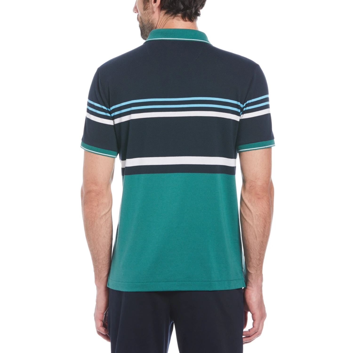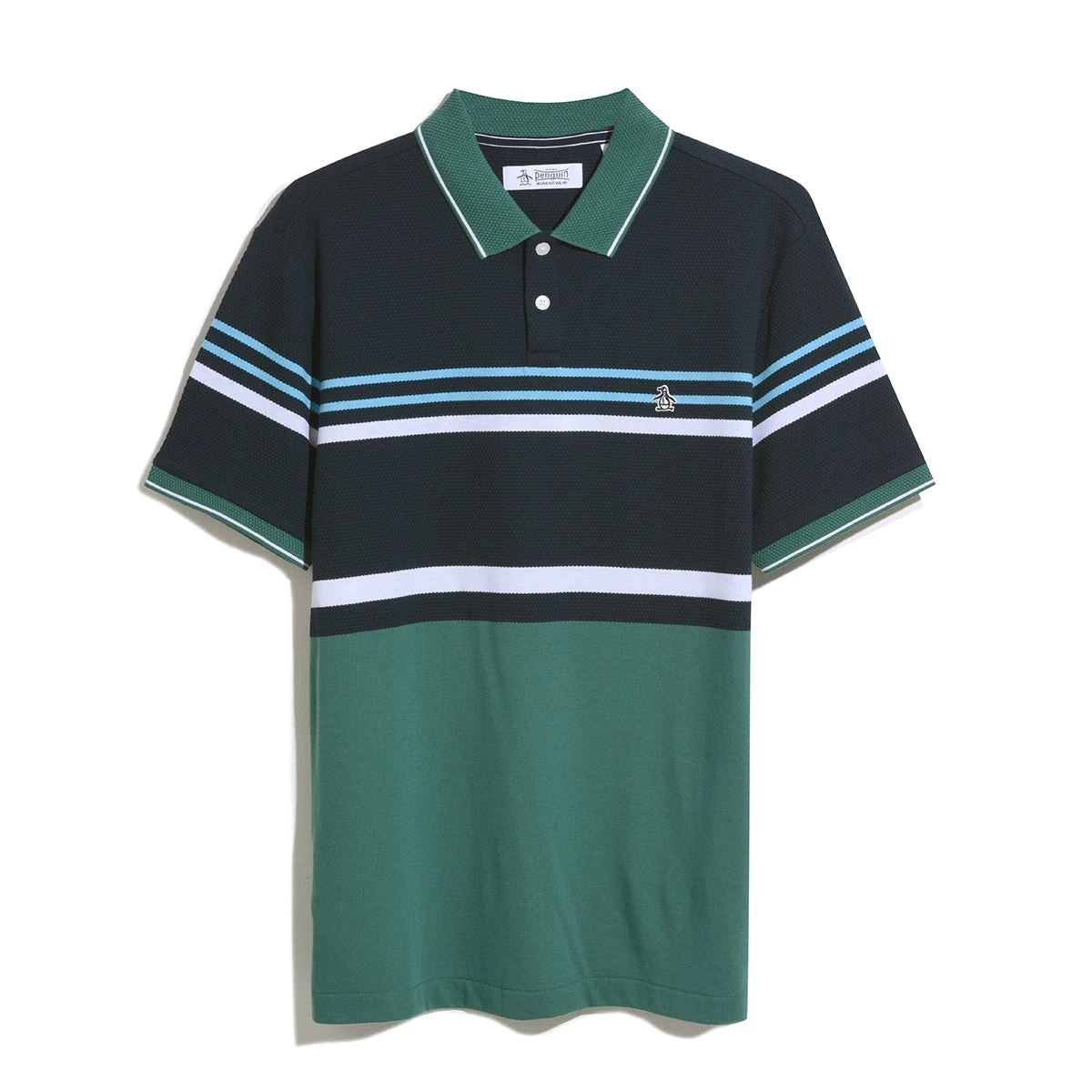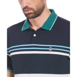 Ideal for casual or office wear, this Original Penguin men’s polo is a versatile addition to any man’s wardrobe. This polo shirt is crafted from textured jacquard fabric with a striped honeycomb pattern to give your outfit a refined aesthetic.Â
