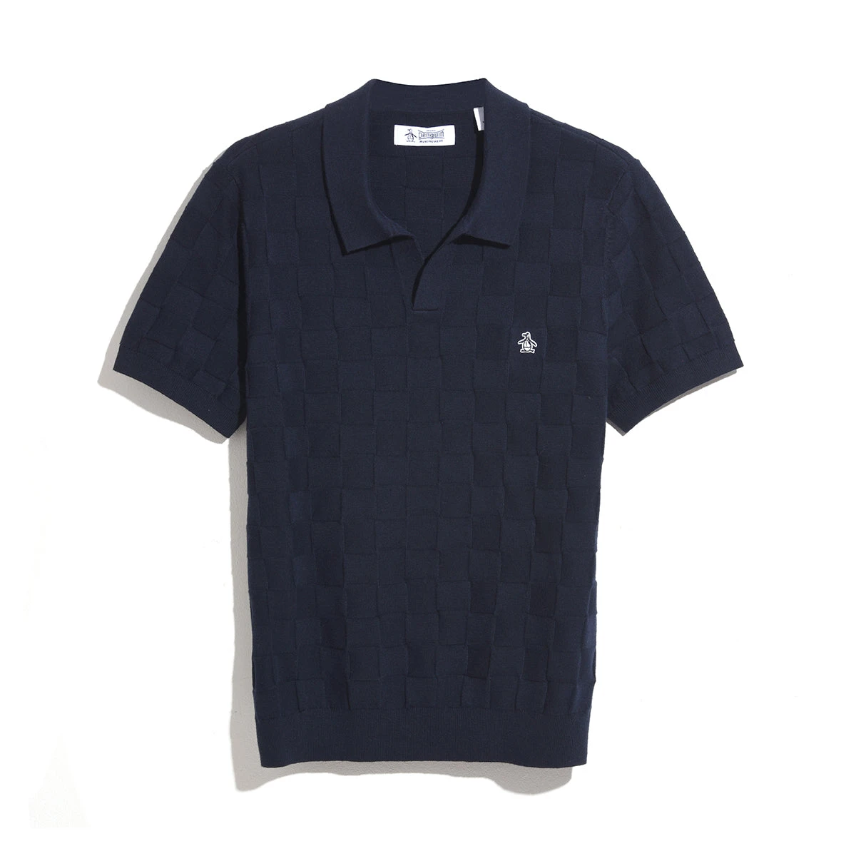 Pairing a durable, textured jacquard fabric with classic polo styling, this Original Penguin men’s sweater offers a sophisticated casual look. An eco-friendly option, the men’s pullover sweater is crafted from 18% recycled polyester. A sleek slim fit and a traditional Johnny collar add extra refinement to the design. Ribbing along the sleeve cuffs and hem gives it a clean finish.