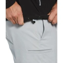 Ideal for golf or casual wear, this Original Penguin men’s golf windbreaker is designed for both style and functionality. The quarter zip closure and striped mock neck collar give it a modern edge while the perforated, stretchy and wind-resistant fabric offers breathability, comfort and protection on and off the course. This golf jacket is finished with zippered side pockets for secure storage.