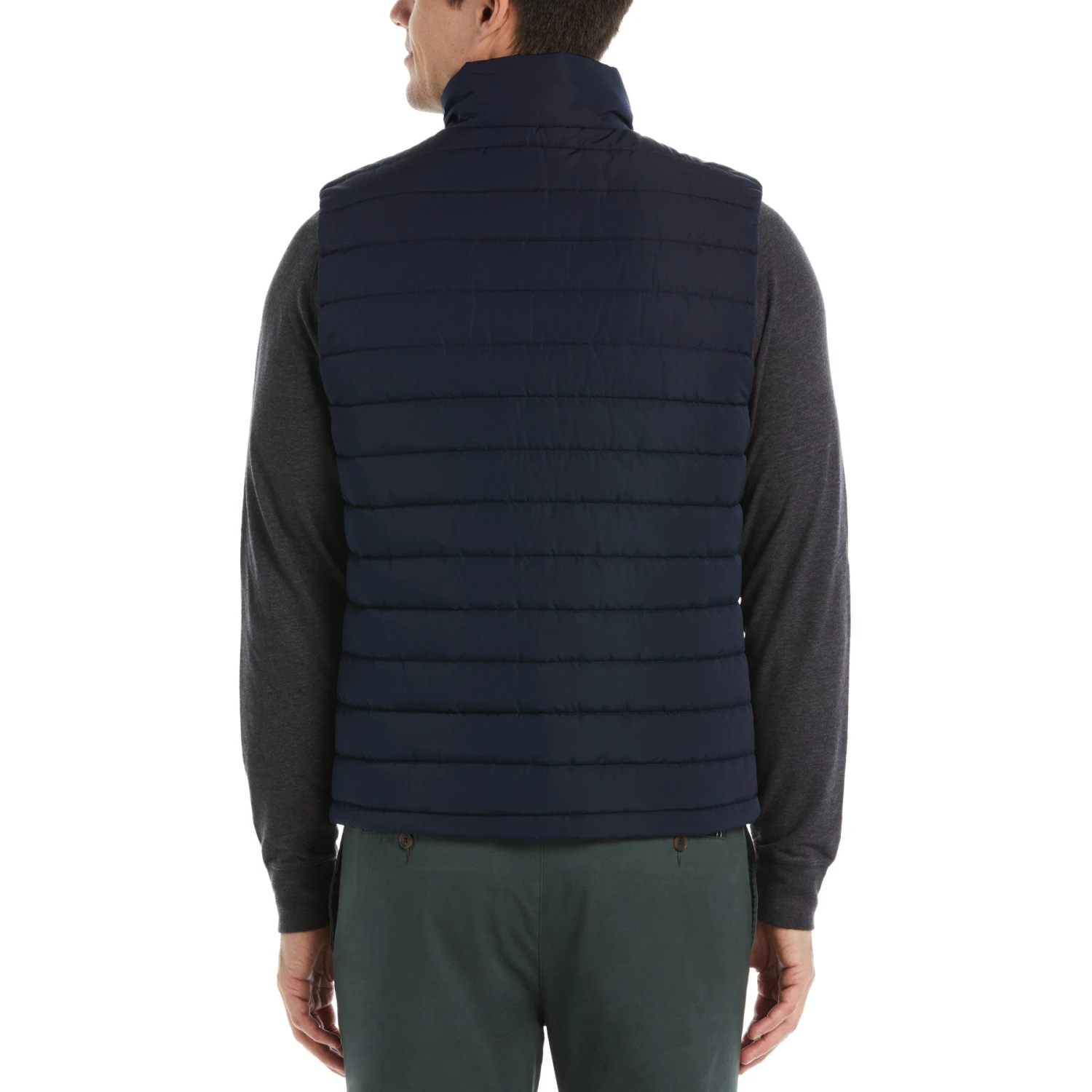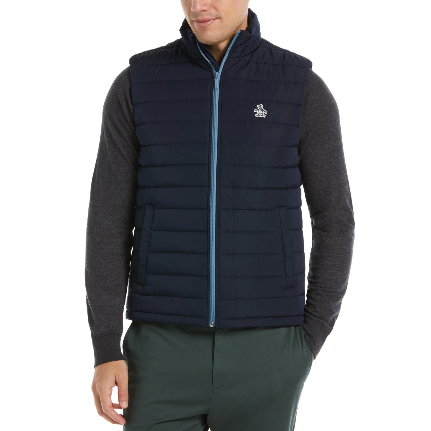 Keep your core warm on chilly days and your arms free with this men’s puffer vest from Original Penguin. The water resistant outdoor vest is perfect for cool days when you want to add an extra layer but don’t need a jacket yet. Two side welt pockets with snaps let you keep your hands warm or store small items when you’re on the go. With a full zip and a mock neck collar, you can wear it open or zip it right up to keep out the wind.