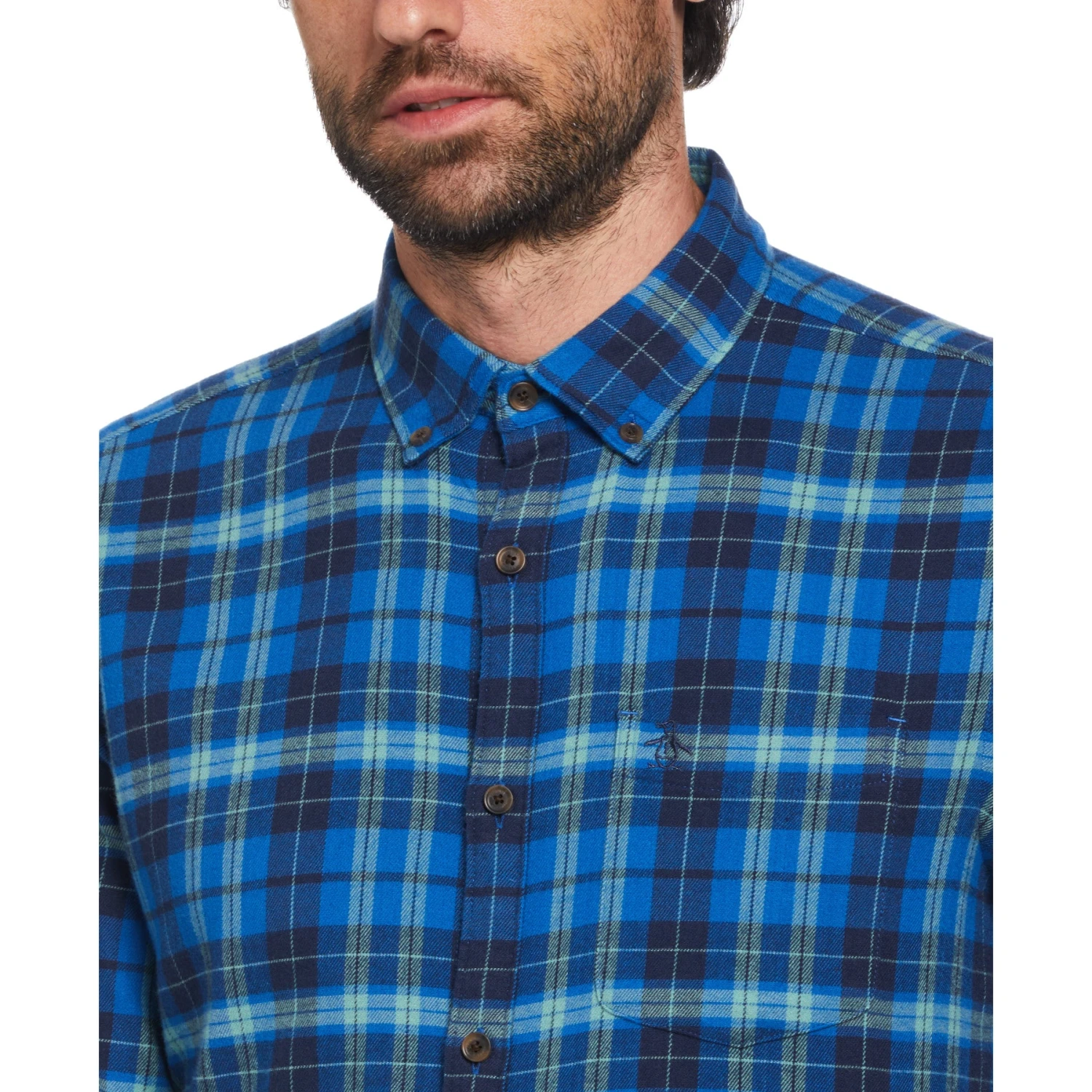 Original Penguin Cotton Dobby Basketweave Textured Short Sleeve Button-Down Shirt In Blue Indigo