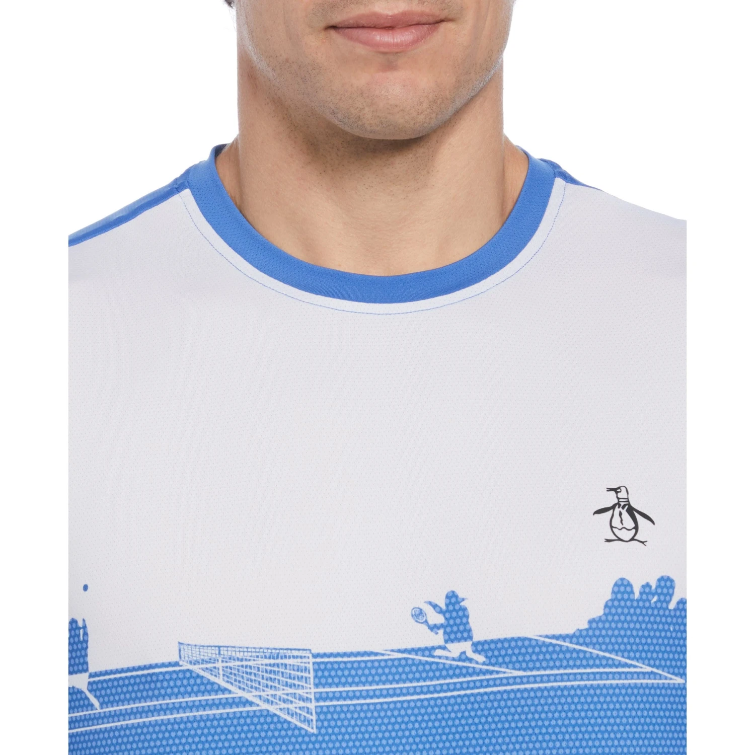 Lightweight, single-knit fabric helps to ensure comfort in changing weather conditions, while short sleeves add to its casual appeal. The front of the shirt features a fun graphic print of our popular mascot Pete the penguin serving and smashing with his usual suave style on the tennis court. Designed with a generous amount of stretch and moisture-wicking properties, this tennis t-shirt moves with you and helps to keep you dry during high-intensity games.