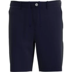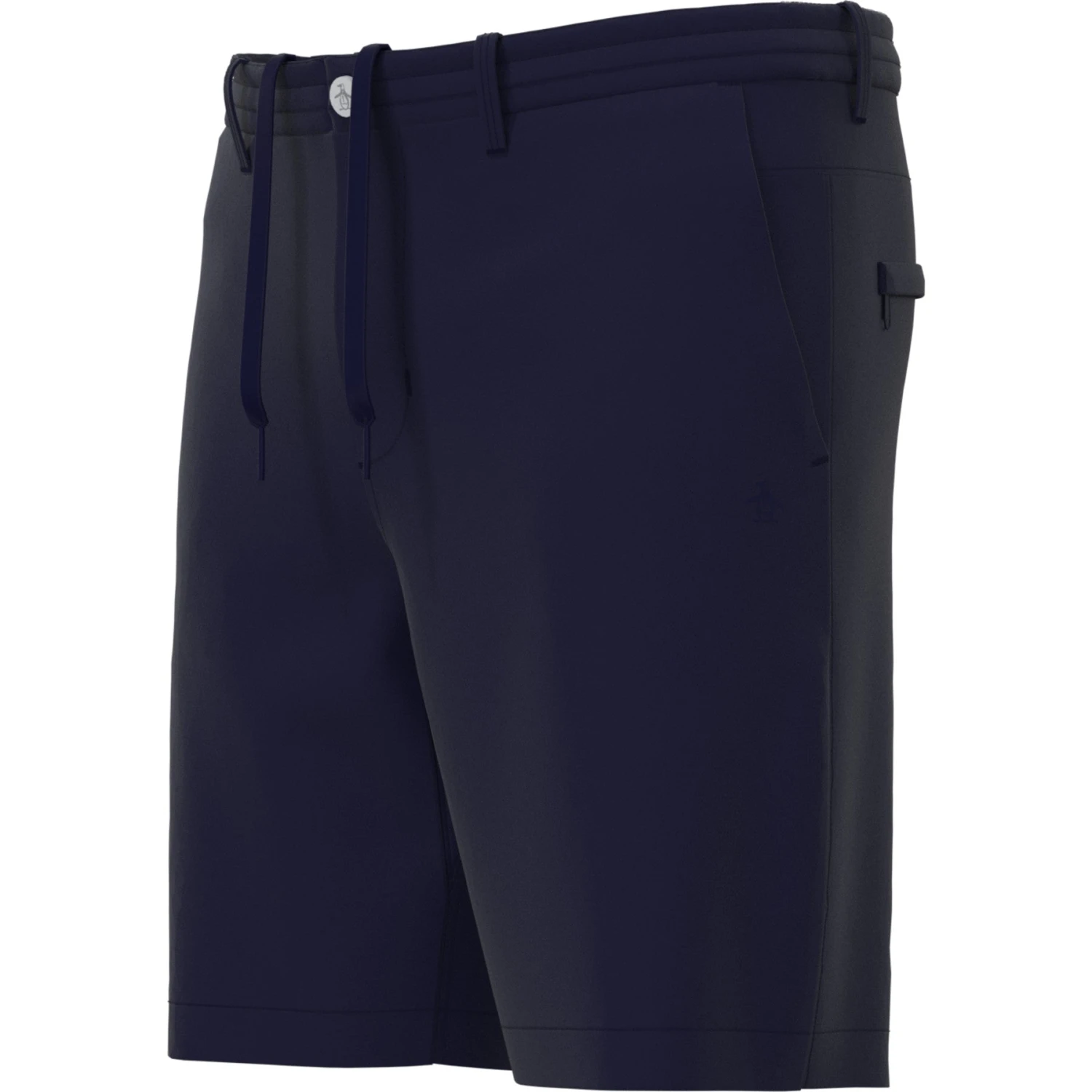 Play to win in these fashionable and functional Original Penguin men’s golf shorts. The durable double-weave fabric has added stretch for a full range of motion as you bend and swing. Designed for comfort and performance, these 8” golf shorts feature a drawstring elastic waistband for a secure fit that moves with you. The gusseted design enhances comfort and there are plenty of pockets for hands-free convenience, including a cell phone pocket and a zippered back pocket.