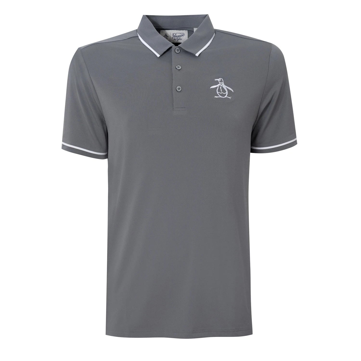 Pete goes big on this versatile men’s golf shirt from Original Penguin. The lightweight single knit fabric is quick-drying and enhanced with stretch for flexible comfort, on or off the course. Contrast tipping at the collar and cuffs complements the oversized Pete logo at the left chest for a bold, contemporary look. Featuring 88% recycled polyester content, this short sleeve golf polo is a sustainable style option you can feel good about.