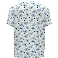 This Original Penguin men’s printed shirt features an eye-catching tennis inspired print making it a fun and fashionable addition to any wardrobe. The single knit fabric enhanced with stretch provides lightweight flex, ensuring a perfect fit that moves with you. Made from 44% recycled polyester sourced from plastic bottles, this eco-friendly men’s short sleeve shirt not only looks great but also supports a greener future.