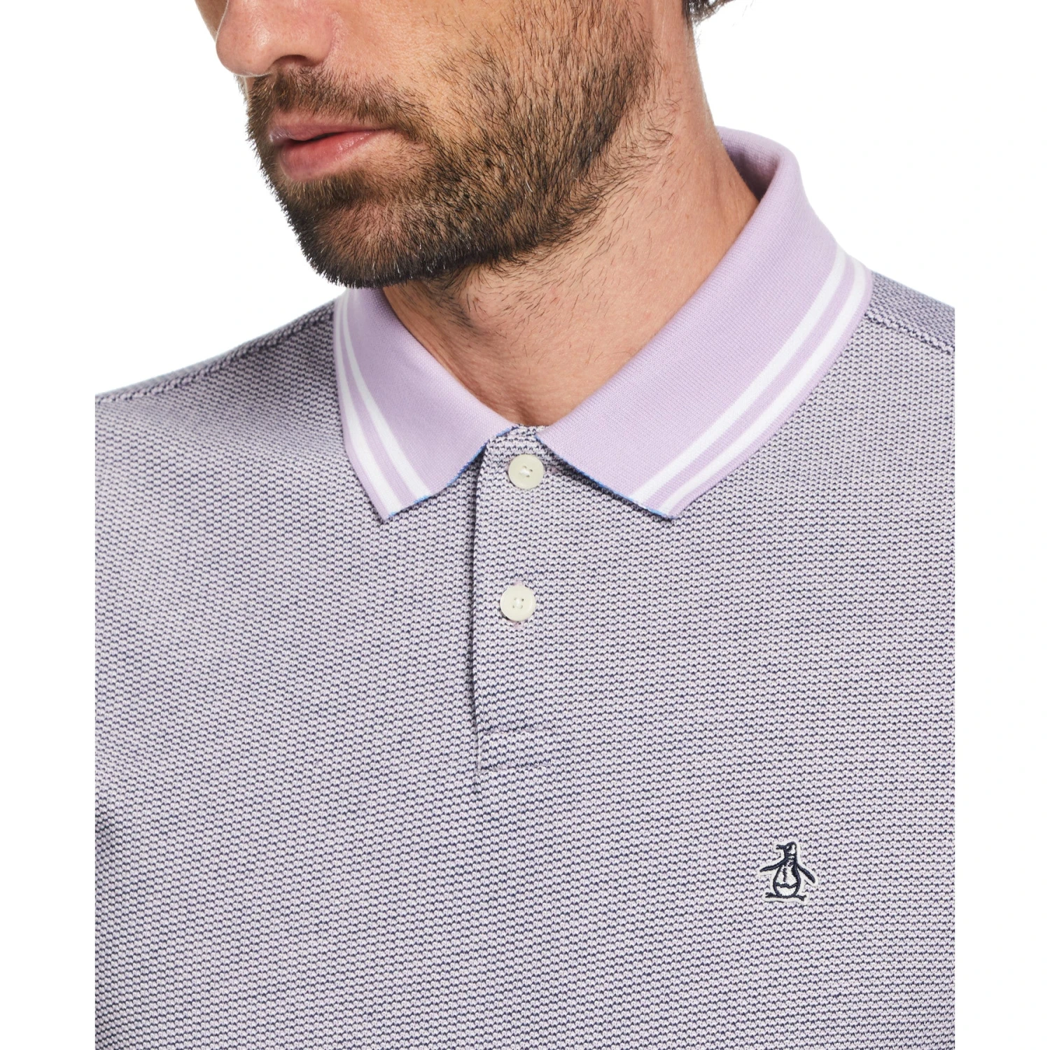 This Original Penguin polo shirt for men gives your everyday wear a stylish twist. Featuring a textured pique fabric and a slim fit for a modern silhouette, this men’s polo has multicolored stripe details under the collar for a unique and eye-catching touch. This polo shirt also features tipping on the cuffs and short sleeves for added style.