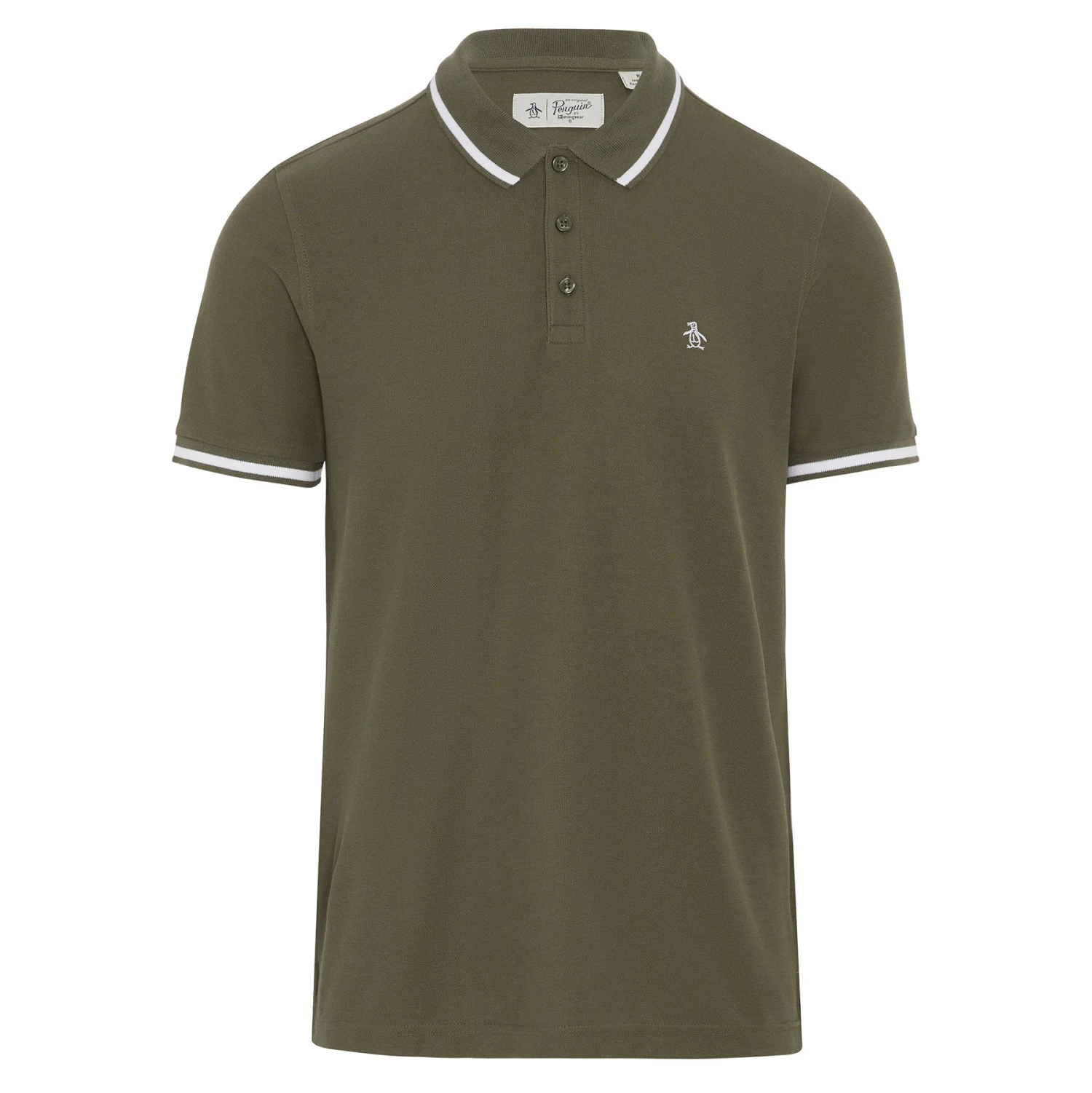 Introducing our Short Sleeve Polo Shirt With Contrast Tipping In Grape Leaf. Designed with a slim fit and 3 button placket, this shirt features contrast tipping on the cuffs and hem for a unique touch. Complete with our embroidered Penguin logo