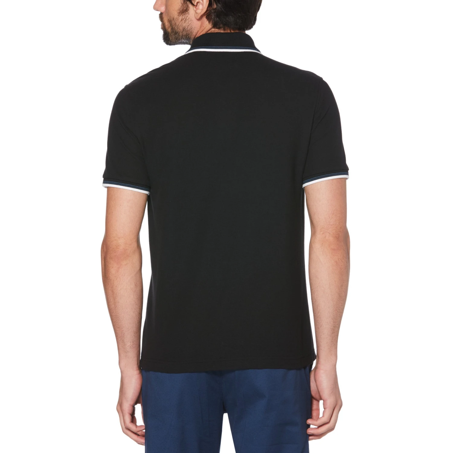 Original Penguin Sticker Pete Organic Cotton Polo Shirt In True Black