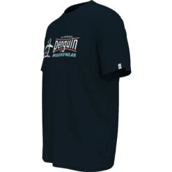 Make a stylish statement while still feeling comfortable with this men’s t-shirt from Original Penguin. This t-shirt for men features a modern slim fit silhouette with a ribbed collar and soft, organic cotton jersey blend fabric for a comfortable fit and feel. Ideal for any casual occasion, this men’s cotton t-shirt is finished with a striking graphic print for a fashionable off-duty look that’s never out of style.