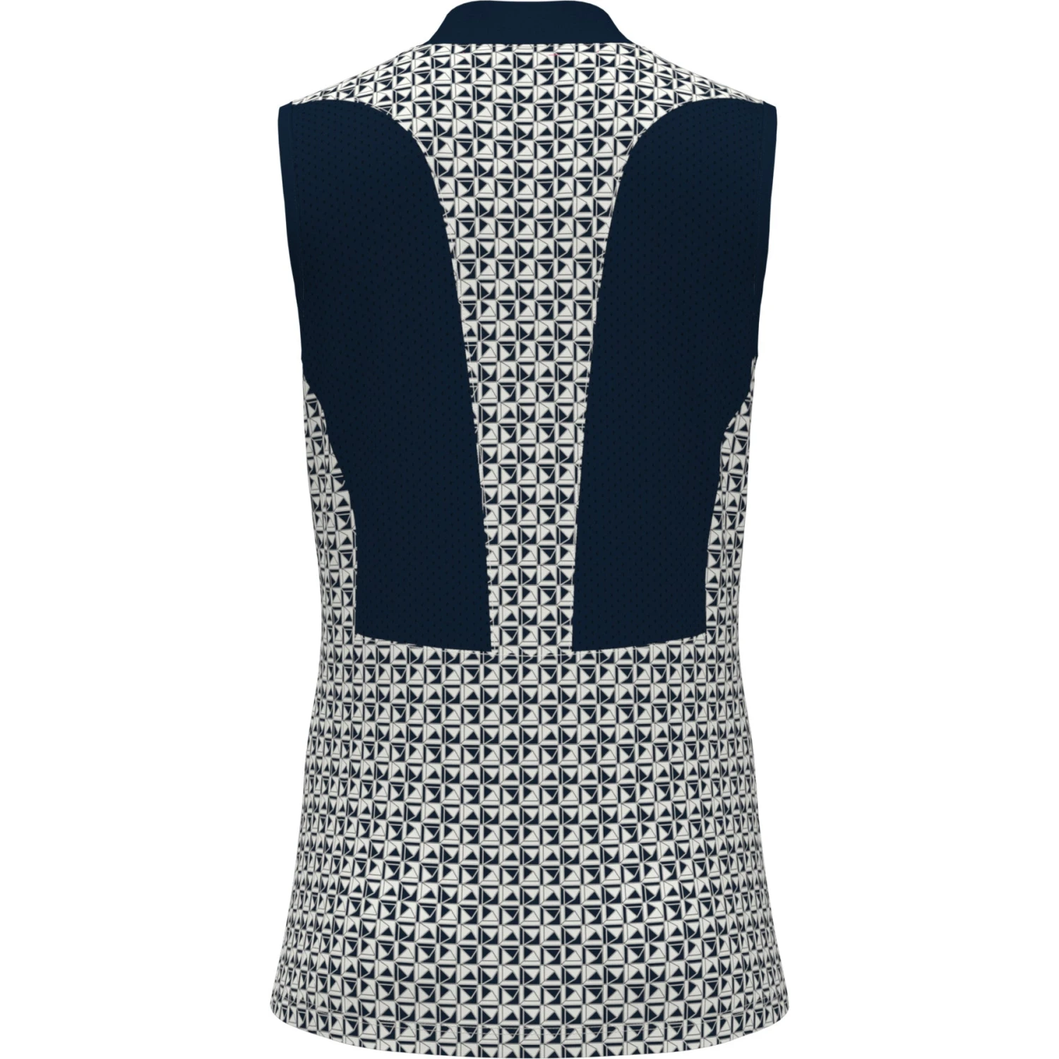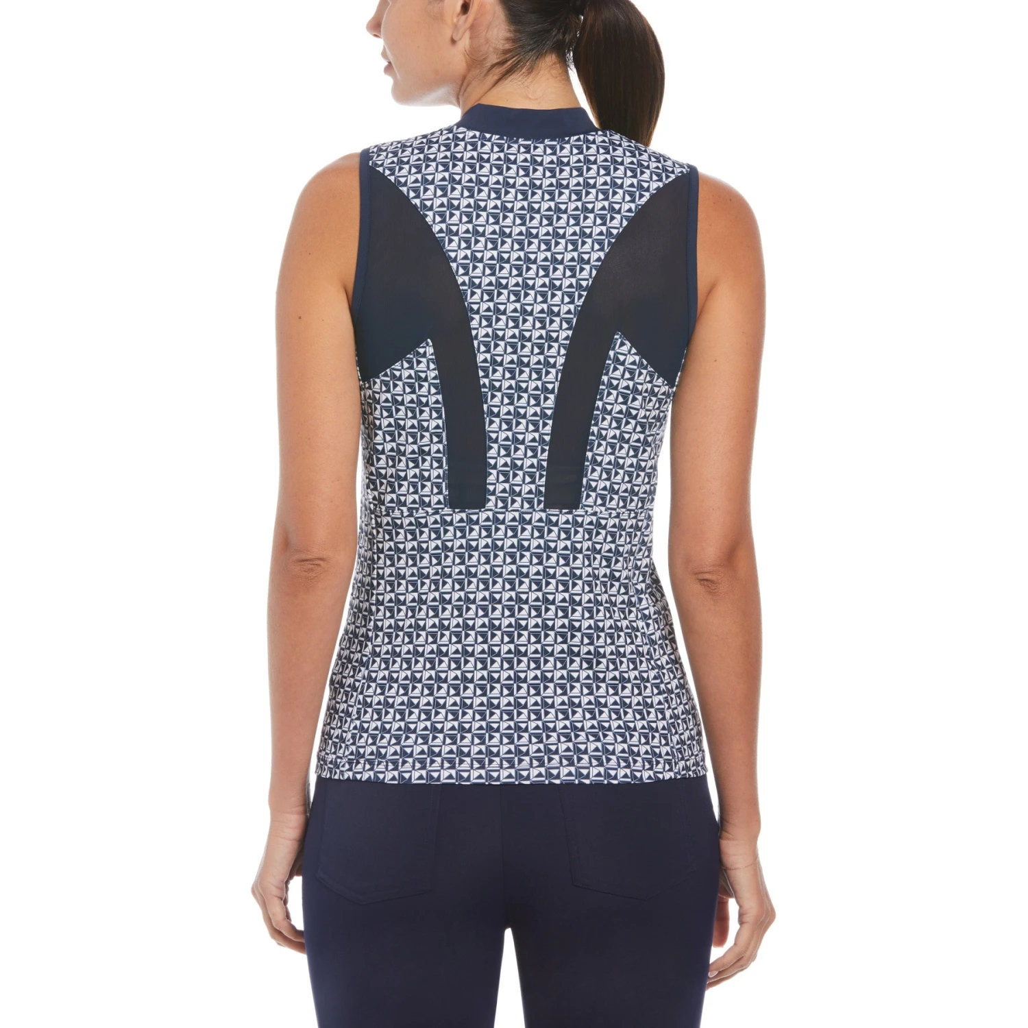 Update your golf wardrobe with this women’s golf top from Original Penguin that merges fashion and function in one seamless design. This golf polo shirt is made with stretchy, lightweight recycled fabric that wicks away moisture for comfort on the course and has a geometric print for a chic look. The handy quarter zip closure and mesh back offers enhanced breathability.