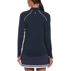 Original Penguin Women’s Solid Long Sleeve Tennis Shirt With Sun Protection In Black Iris